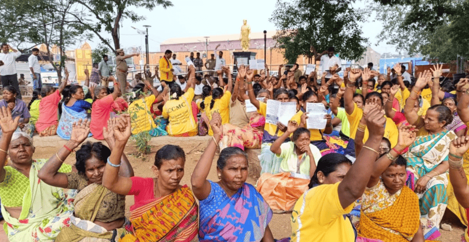 ஒப்பந்த பணியாளர்கள், தூய்மை பணியாளர்கள், டிரைவர், கிளீனர்கள் என யாருக்கும் எந்தவிதமான சம்பளமும் நீண்ட நாட்களாக நிர்ணயம் செய்யவில்லை என்றும், உடனடியாக மாவட்ட ஆட்சியர் அறிவித்த சம்பளத்தை நிர்ணயம் செய்து வழங்கக்கோரி கோவை மாவட்ட தூய்மை பணியாளர் உரிமை மீட்பு கூட்டு இயக்கம் சார்பாக கோவை வஉசி மைதானத்தில் காத்திருப்பு போராட்டம் நடைபெற்று வருகிறது.