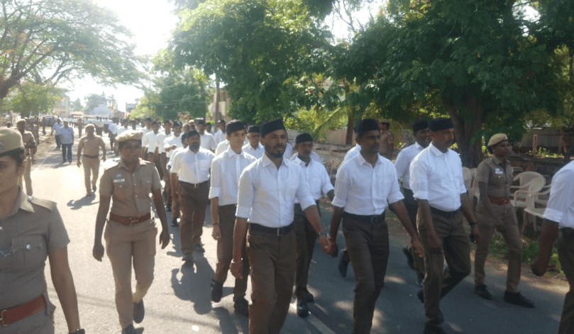 கோவை ; ஆர்எஸ்எஸ் பேரணியில் நீதிமன்ற நிபந்தனைகளை மீறியதாக RSS நிர்வாகிகள் மீது வழக்குப் பதிவு செய்யப்பட்டுள்ளது.