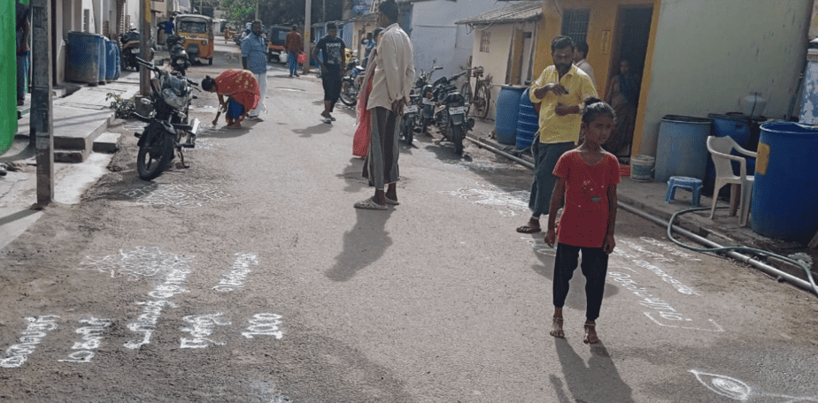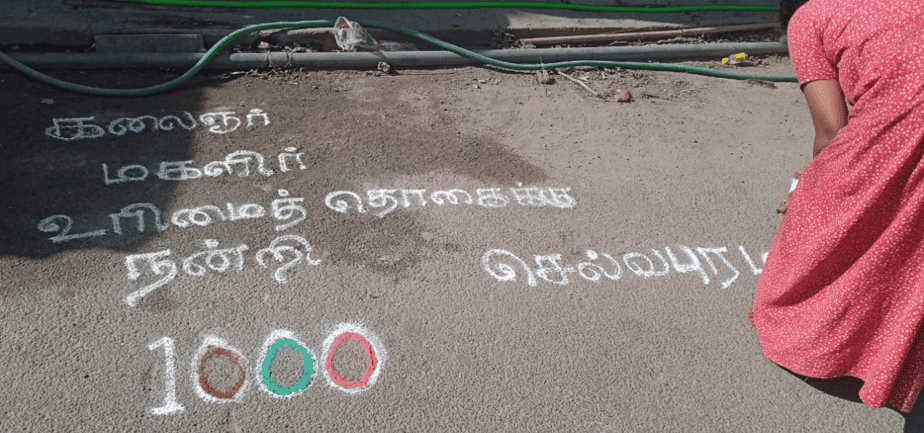 கிடைச்சாச்சு ரூ.1000… வீட்டு முன்பு கோலமிட்டு முதலமைச்சர் ஸ்டாலினுக்கு நன்றி தெரிவித்த பொதுமக்கள்!!