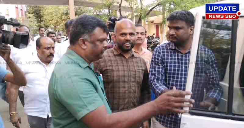 நீதிமன்றத்தில் பாஜக கோவை மாவட்ட தலைவர் பாலாஜி உத்தம ராமசாமி ஏற்பட பாஜகவினர் சிலர் திரண்டு இருந்தனர்.