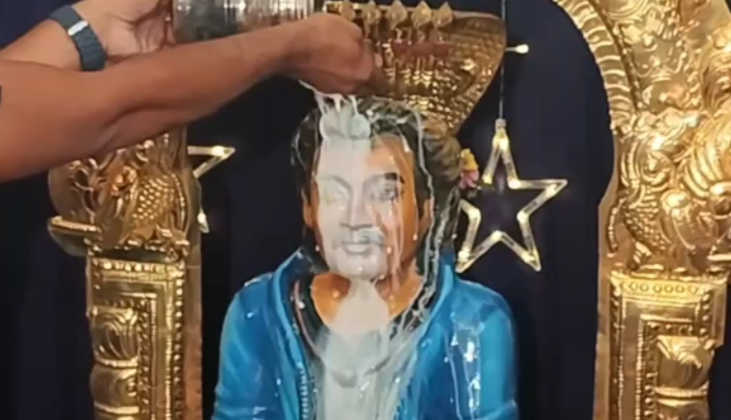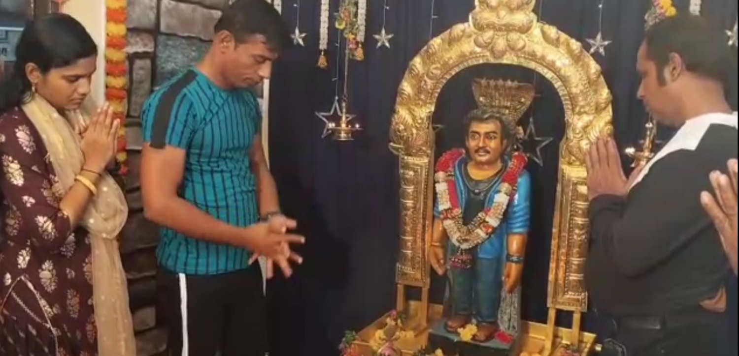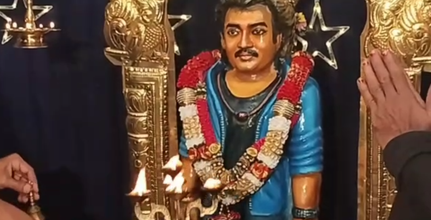 மேலும், ரஜினி கோவில் என பெயரிட்டு ரஜினியின் படத்திற்கு நாள்தோறும் ஆறு வகையான அபிஷேகம் மற்றும் தீபாராதனையும் செய்து வழிபட்டு வருகிறார் கார்த்திக்.
