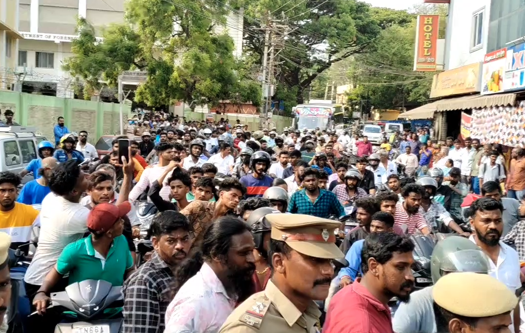 பின்னர் நரேஷ்குமாரின் உடல் ஆம்புலன்ஸ் மூலம் கொண்டு செல்லப்பட்ட போது உறவினர்கள் மற்றும் நண்பர்கள் சுமார் 30க்கும் மேற்பட்ட வாகனங்களில் ஒரே நேரத்தில் கிளம்பியதால் அந்த சாலையில் வாகன நெரிசல் ஏற்பட்டது.