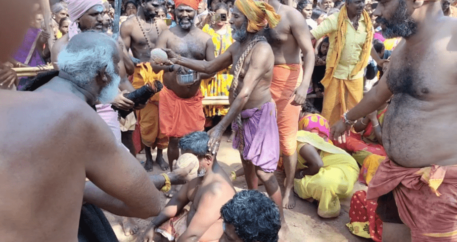 வலையபட்டி குரும்பாரின மக்களின் விநோதம் ; தலையில் தேங்காய் உடைத்து வேண்டுதல்… 300 ஆண்டுகளாக நடக்கும் பாரம்பரியம்!!