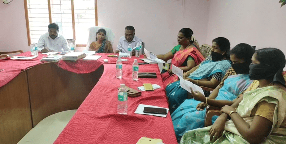 இந்த நிலையில் பொன்னரசி குறித்து அவதூறாக துண்டு பிரசுரங்களை ஓட்டியும் சமூக வலைத்தளங்களில் தகவல்களை பரப்பியுள்ளனர். இதனால், மன உளைச்சலுக்கு ஆளான அவர் தூக்க மாத்திரைகளை உண்டு உயிரை மாய்த்துக்கொள்ள முயன்று மருத்துவமனையில் சிகிச்சை பெற்று வந்த நிலையில், இன்று பேரூராட்சி தலைவர் ராஜேஸ்வரி மற்றும் செயல் அலுவலர் கலாதரன் முன்னிலையில் கூட்டம் நடைபெற்றது.