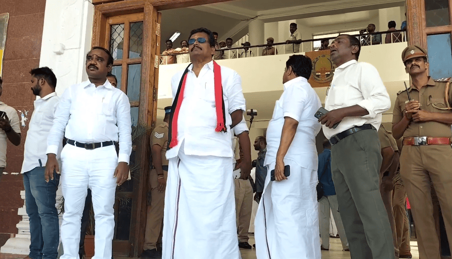 இரண்டு கார்களை மட்டும் போலீசார் அனுமதித்த நிலையில் தங்க தமிழ்ச்செல்வனின் காரை அனுமதிக்கவில்லை பின்னர் உடனடியாக தனது உதவியாளரிடம் தனது காரில் உள்ள சென்று வேட்பு மனுவை எடுத்து வர கூறினார்.