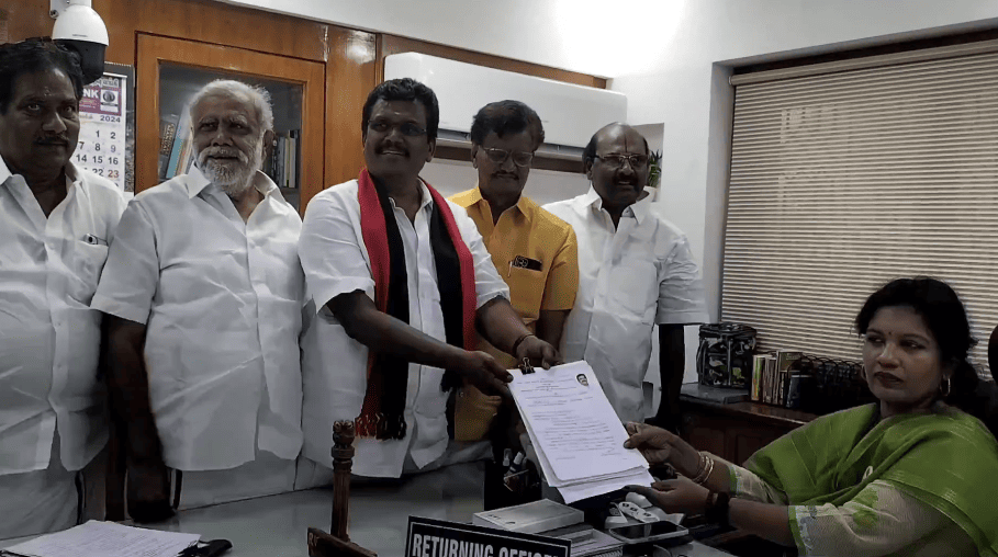 வேட்பு மனு படிவத்தை மறந்த திமுக வேட்பாளர் தங்கத்தமிழ்செல்வன் : கடுப்பான அமைச்சர்கள்.. அலுவலகத்தில் பரபரப்பு!