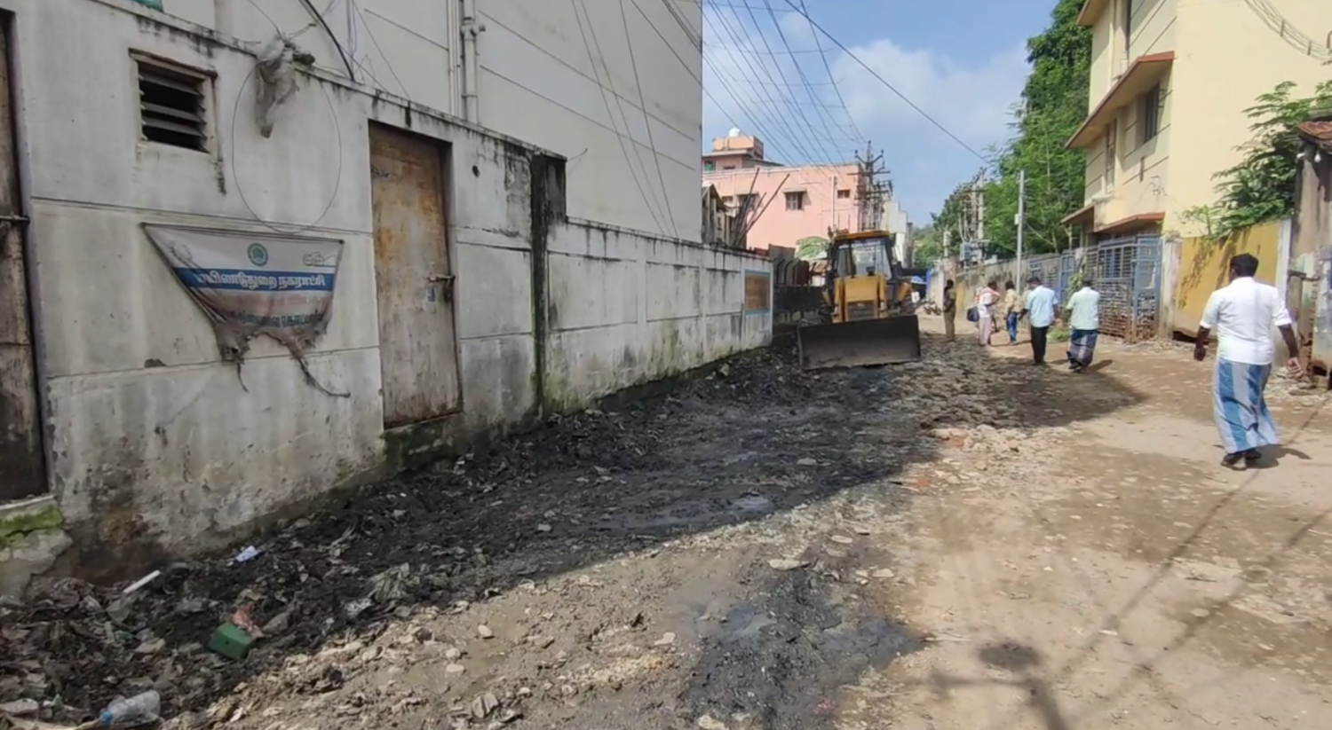 இந்நிலையில், மழைக்காலத்தில் தினம்தோறும், மதுபான கடைக்கு வந்து செல்லும் ஆயிரக்கணக்கான குடிமகன்கள் வசதிக்காக, புதிய தார் சாலை அமைக்க நகர்மன்ற தலைவர் குண்டாமணி (எ) செல்வராஜ் முடிவு செய்து, அதற்காக மயிலாடுதுறையைச் சேர்ந்த ரங்கராஜ் என்கிற தொழிலதிபர் உதவியுடன், நமக்கு நாமே திட்டத்தில் தொழிலதிபர் ரங்கராஜை 15 லட்ச ரூபாய் பணம் கட்ட வைத்து, நகராட்சியிலிருந்து, ரு 15 லட்சம் பணம் பெற்று புதிய சாலை அமைக்கப்படுகிறது.