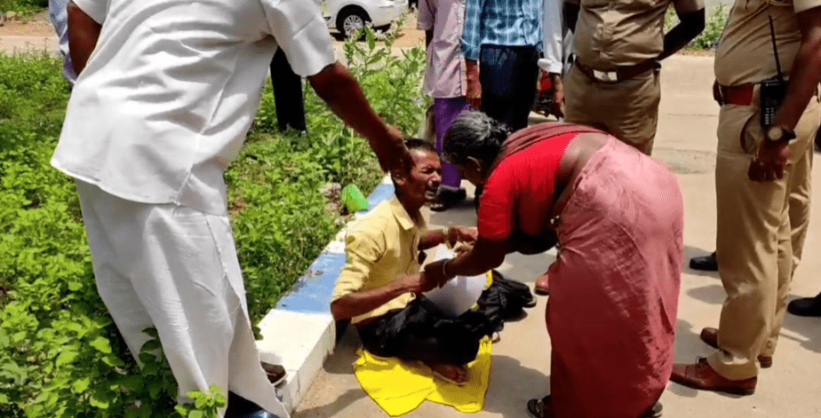 திமுக-காரங்க கொடுமைப்படுத்துறாங்க… முதலமைச்சர் ஸ்டாலின் இங்க வரனும்… வெற்றிலை, பாக்குடன் இளைஞர் தர்ணா..!!