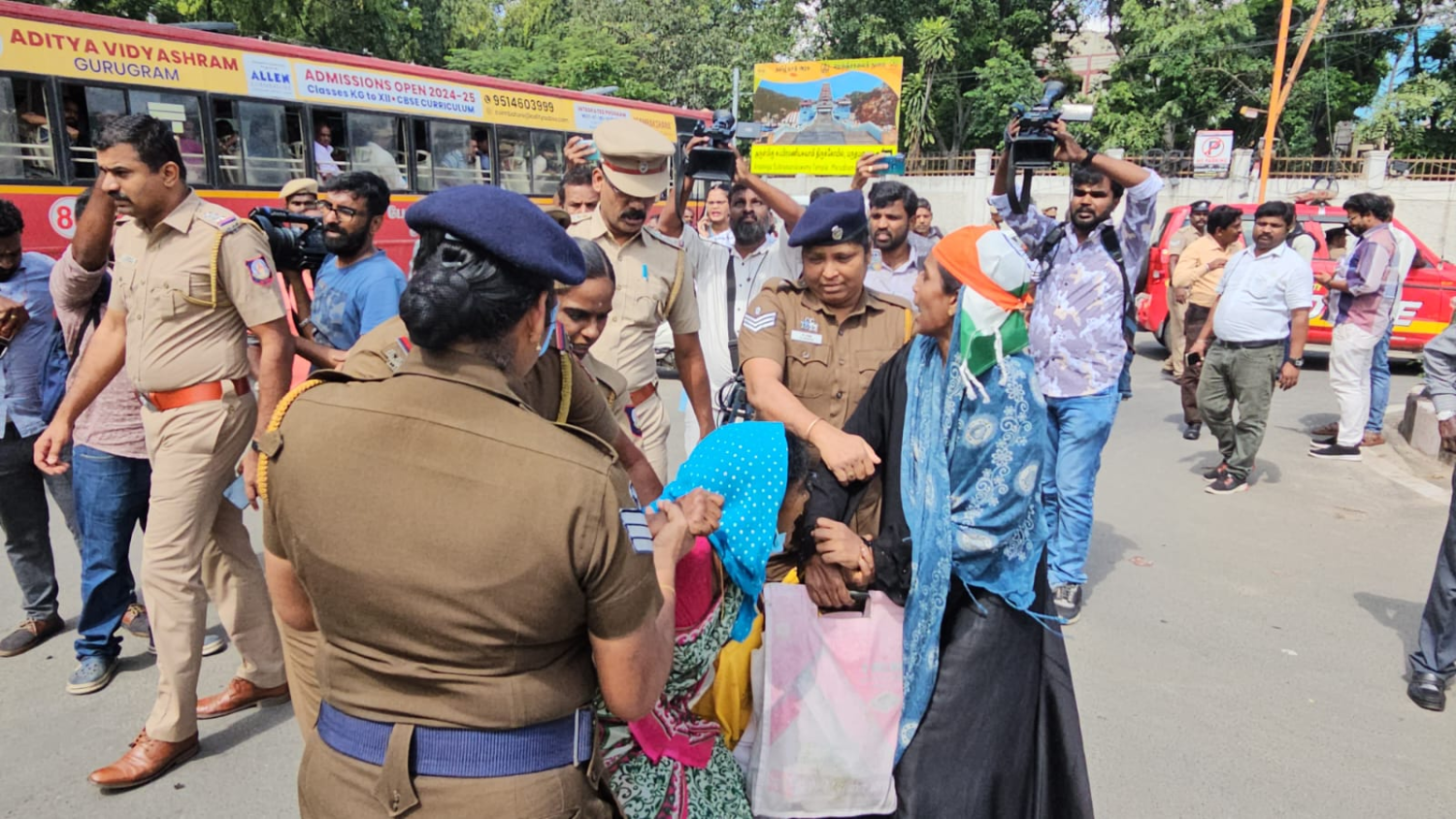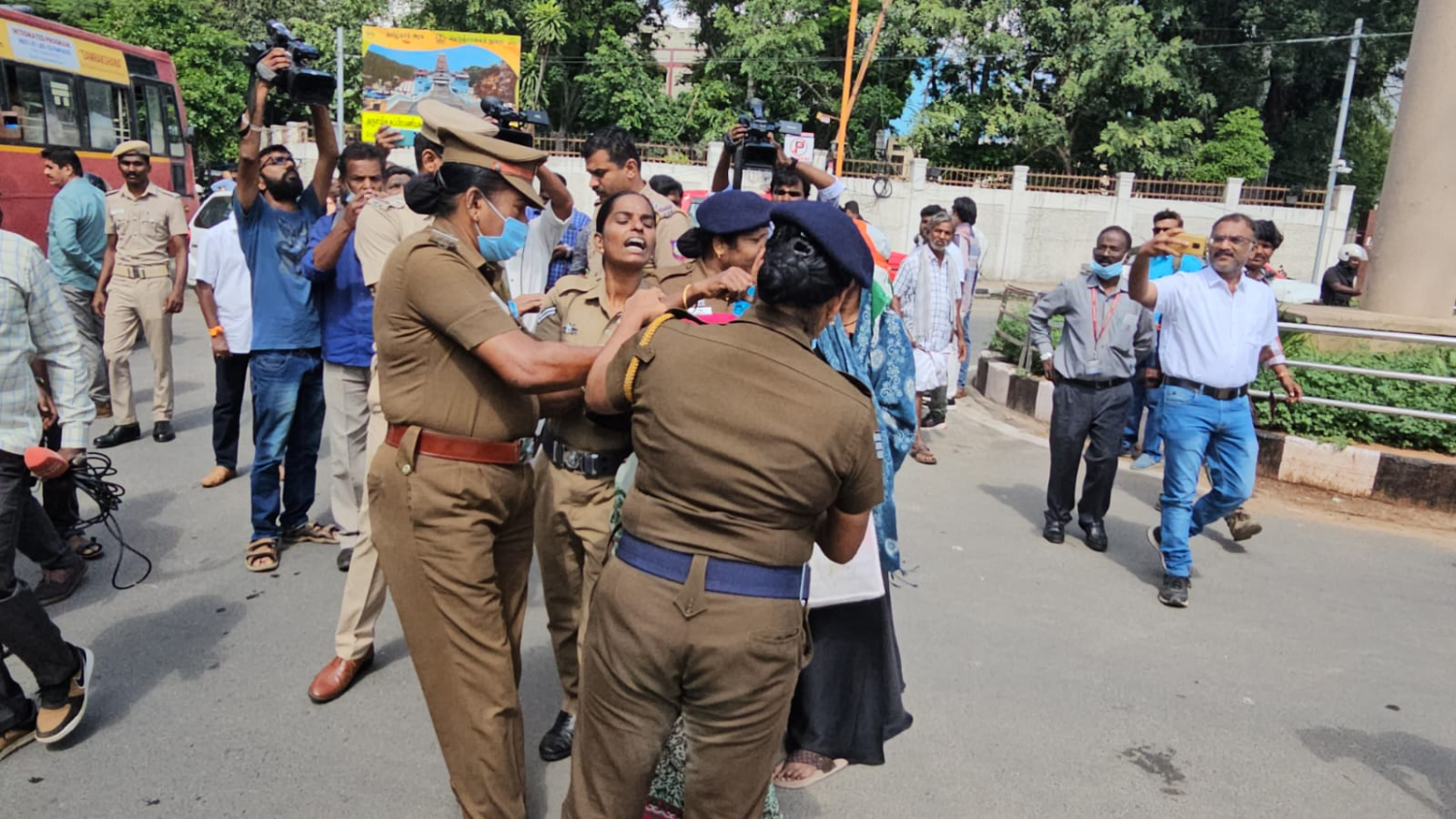 அவர்களிடம் காவல்துறையினர் சமாதான பேச்சு வார்த்தை நடத்திய போதும் அவர்கள் சாலை மறியலை கைவிடாததால் காவல்துறையினர் வலுக்கட்டாயமாக கைது செய்து பந்தய சாலை காவல் நிலையத்திற்கு அழைத்துச் சென்றனர். இதனால் அப்பகுதியில் போக்குவரத்து பாதிக்கப்பட்டு சிறிது நேரம் பரபரப்பான சூழல் நிலவியது.