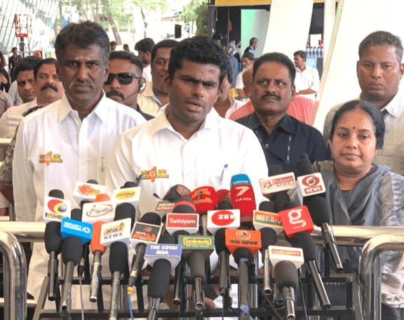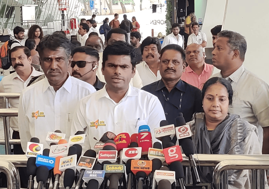 கோவை விமான நிலையத்தில் பாஜக மாநில தலைவர் அண்ணாமலை செய்தியாளர்களை சந்தித்தார்.
