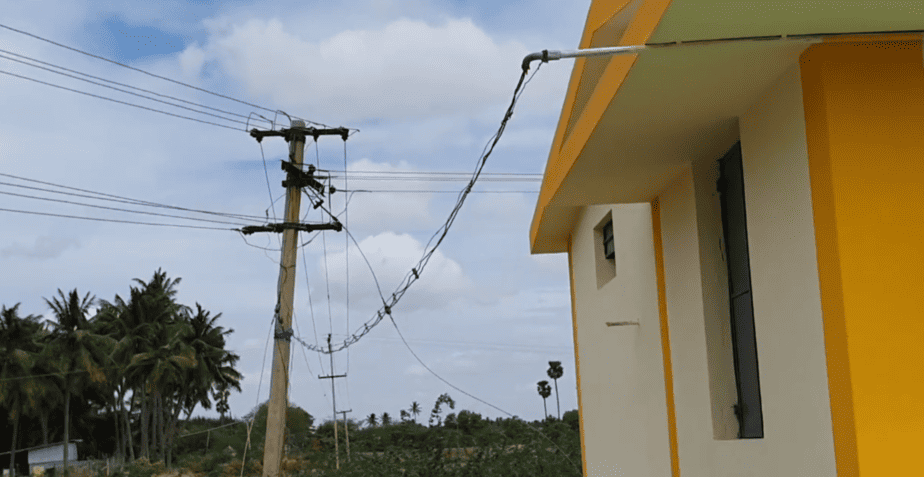 புதிய நியாய விலை கடை கட்டுமான பணி முடிந்து, தற்போது வரை மின் இணைப்பு வழங்கப்படாமல் உள்ளது. இந்த நிலையில், திறப்பு விழாவிற்காக கூட்டுறவுத்துறை ஊழியர்கள் கடைக்கு பின்புறம் அமைந்துள்ள மின் கம்பத்திலிருந்து, சட்டவிரோதமாக கேபிள்களை மாட்டி மின்சாரத்தை எடுத்துள்ளனர்.