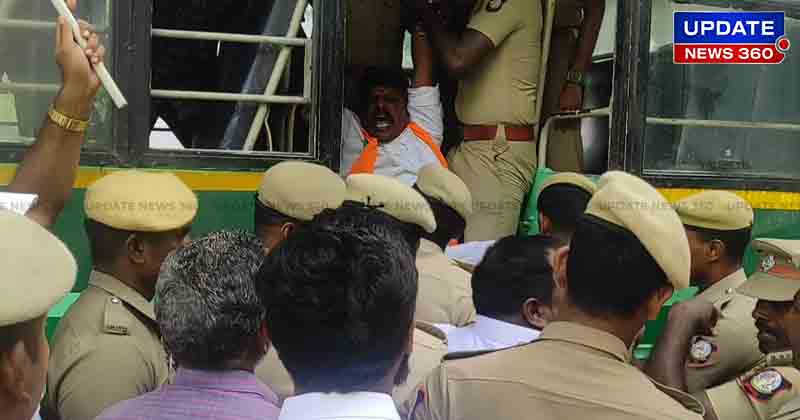 கைது செய்ய கூடாது என பாஜகவினர் பெரும் வாக்குவாதத்தில் ஈடுபட்ட போது காவல்துறையினர் பாஜகவினரை குண்டு கட்டாக தூக்கி செல்லப்பட்டனர். இதில் பெண்கள் ஆண்கள் என அனைவரும் கைது செய்யப்பட்டு தனியார் திருமண மண்டபத்தில் அடைத்து வைத்தனர்.
