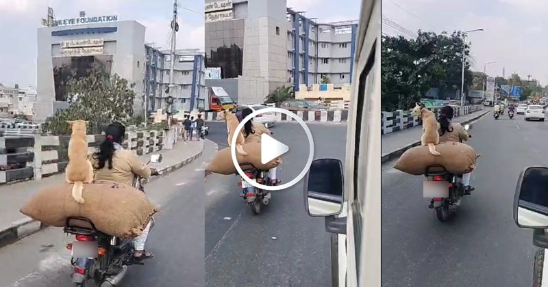 பெண் ஒருவர் தனது இருசக்கர வாகனம் ஓட்டிச் சென்றபோது உடன் செல்லப் பிராணியான வளர்ப்பு நாயையும் அழைத்துச் சென்றுள்ளார். இருசக்கர வாகனத்தின் பின்புறத்தில் உள்ள வைக்கப்பட்டிருந்த மூட்டையின் மீது ஹாயாக அமர்ந்து கொண்ட செல்ல நாய், திரும்பி திரும்பி பார்த்து வேடிக்கை பார்த்து வருகிறது.