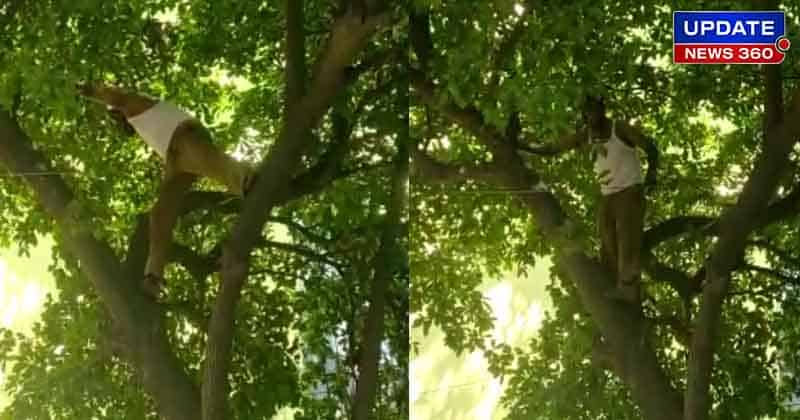 காவல் நிலையத்தில் உள்ள மரத்தில் ஒரு நபர் திடீரென ஏறி தற்கொலை மிரட்டல் விட்ட சம்பவம் பெரும் பரபரப்பை ஏற்படுத்தியது.
