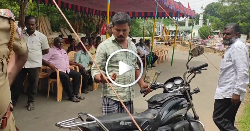 ஈரோடு காளை மாடு சிலை அருகில் மின்வாரிய ஊழியர்கள் சங்கத்தின் சார்பில் தர்ணா போராட்டம் நடைபெற்றது. அப்போது. சூரம்பட்டி காவல்நிலையத்தை சேர்ந்த 10க்கும் மேற்பட்ட போலீசார் பாதுகாப்பு பணிக்காக நின்று கொண்டிருந்தனர். அந்த சமயம், தர்ணா போராட்டத்திற்காக போடப்பட்டிருந்த பந்தல் கூடம் முன்பாக, இருசக்கர வாகனத்தில் வந்த மதுப்பிரியர் ஒருவர், திடீரென ரகளையில் ஈடுபட தொடங்கினார்.