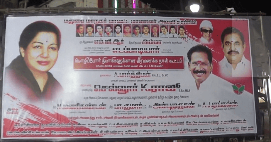 மதுரை மாநகர் மாவட்ட அதிமுக மாணவர் அணி சார்பில் T.M. கோர்ட் பகுதியில் மொழிப்போர் தியாகிகளுக்கான வீரவணக்க நாள் பொதுக்கூட்டத்தில் முன்னாள் அமைச்சர் செல்லூர் ராஜூ கலந்து கொண்டு சிறப்புரை ஆற்றினார்.