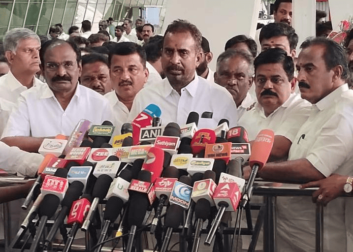 பாராளுமன்ற தேர்தலுக்கான அதிமுக வேட்பாளர் பட்டியல் முழுமையாக வெளியாகி உள்ள நிலையில் சென்னையிலிருந்து விமானம் மூலம் கோவை வந்த முன்னாள் அமைச்சர் எஸ் பி வேலுமணிக்கு கோவை விமான நிலையத்தில் கோவை, பொள்ளாச்சி, நீலகிரி தொகுதிகளுக்கான அதிமுக வேட்பாளர்கள் சார்பில் 500க்கும் மேற்பட்டோர் திரண்டு எஸ் பி வேலுமணிக்கு சிறப்பான வரவேற்பு அளித்தனர்.