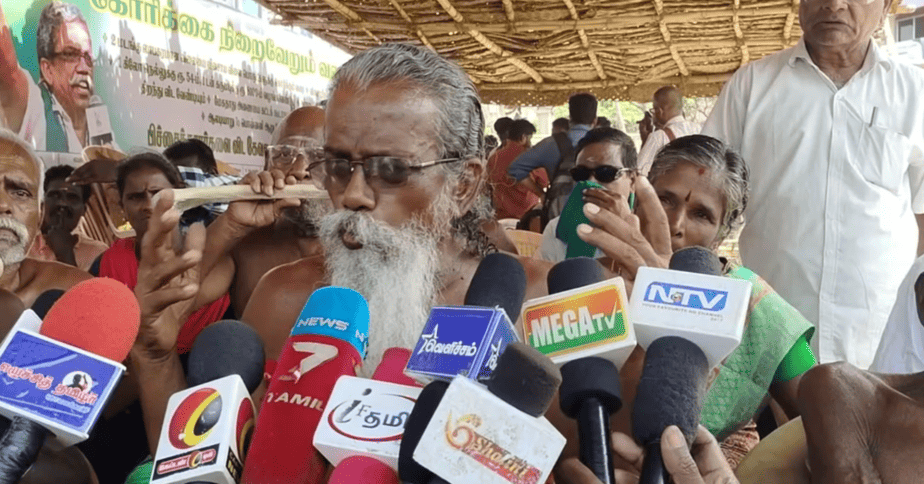இந்நிலையில் 32வது நாளான இன்று எலும்பு துண்டுகளை வைத்து காத்திருப்பு போராட்டத்தில் ஈடுபட்டனர். அப்போது, அந்த வழியே வந்த அமைச்சர் உதயநிதி காரை மறித்து போராட்டத்தில் ஈடுபட்டனர். பின்பு விவசாயிகளின் கோரிக்கைகளை முதல்வரின் கவனத்திற்கு எடுத்து சென்று நிறைவேற்றுவதற்கு நடவடிக்கை எடுக்கப்படும் என அமைச்சர் உதயநிதி ஸ்டாலின் தெரிவித்தார்.