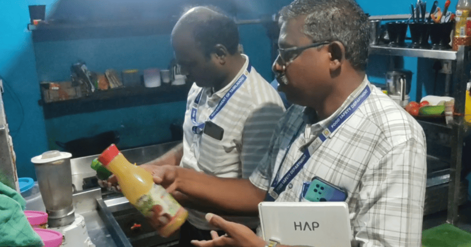 கரூரில் உணவு பாதுகாப்பு அதிகாரிகள் சோதனை மேற்கொண்ட பிறகு செய்தியாளர்களிடம் பேசுகையில், சுகாதாரத்துறை அமைச்சர் உத்தரவின் பேரில், இன்று கரூர் மாவட்டத்தில் பல்வேறு சிறிய மற்றும் பெரிய உணவுகளில் சோதனை நடத்தப்பட்டு வருகிறது. உணவு பாதுகாப்பு சட்ட விதிகளை மீறி உணவு தயாரிக்கப்படும் பட்சத்தில் அவர்கள் மீது சட்டப்படி நடவடிக்கை எடுக்கப்படும், என அதிகாரிகள் எச்சரிக்கை விடுத்துள்ளனர்.