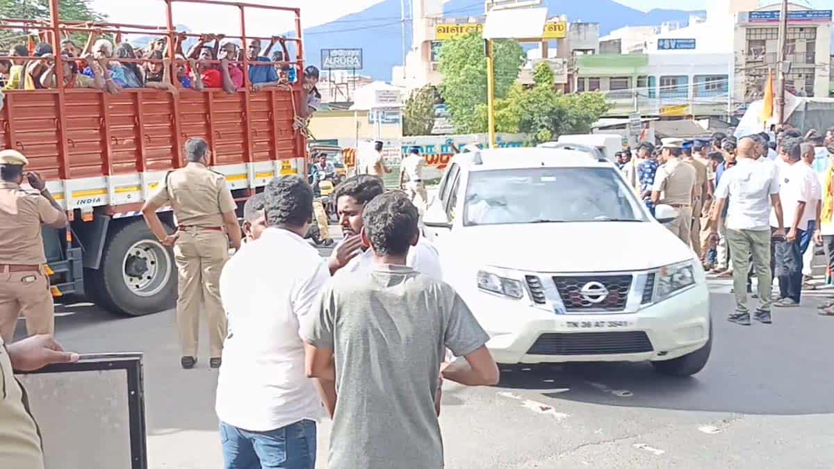 மேலும் தொடர்ந்து இந்து முன்னணி அமைப்பினர் மற்றும் பொதுமக்கள் காவல்துறையினரிடம் வாக்குவாதத்தில் ஈடுபட்டு வருவதால் சற்று பதட்டமான சூழ்நிலை ஏற்பட்டதோடு அப்பகுதியில் சுமார் நூற்றுக்கும் மேற்பட்ட காவல்துறையினர் குவிக்கப்பட்டுள்ளனர்.
