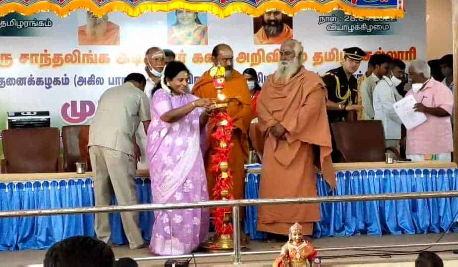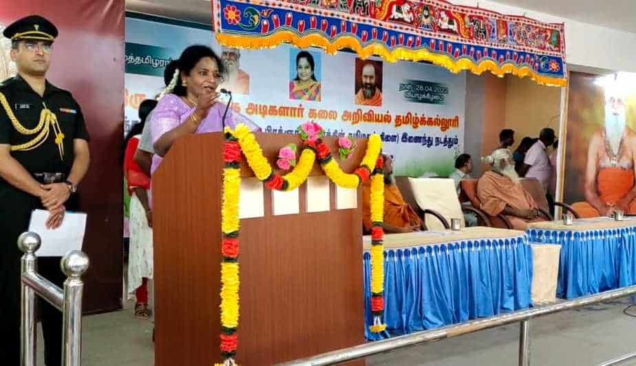 இங்கு சாந்தலிங்க ராமசாமி அடிகளாரும் தொண்டாற்றி வருவதாக அறிந்தேன். எனவே ஒரு ராமசாமி மட்டும் தமிழுக்கு சேவை செய்யவில்லை. பல ராமசாமிகள் சேவை செய்துள்ளதாக கூறினார். பெண்களை வளர்ச்சியை வைத்து தான் நாட்டின் வளர்ச்சியை குறிபிட முடியும் என சொன்னால் இங்கு ஆண்களுக்கு சமமாக பெண்கள் இருப்பது மகிழ்ச்சி அளிக்கிறது என தெரிவித்தார்.