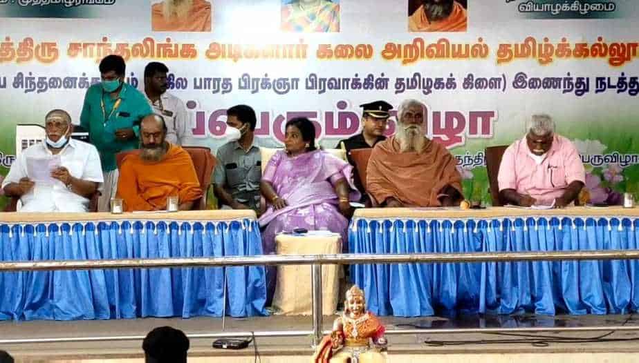 கோவை பேரூர் பகுதியில் உள்ள தமிழ்கல்லூரியில் சாந்தலிங்க அடிகளார் கலை அறிவியல் தமிழ்க்கல்லூரி மற்றும் தேசிய சிந்தனைக்கழகம் (அகில பாரத பிரக்ஞா பிரவக்கின் தமிழக கிளை) இணைந்து நடத்தும் முப்பெரும் விழா(சுபகிருது ஆண்டு பிறப்பு, அம்பேத்கர் பிறந்தநாள், 75ம் ஆண்டு சுதந்திரதின பெருவிழா) நடைபெற்றது.