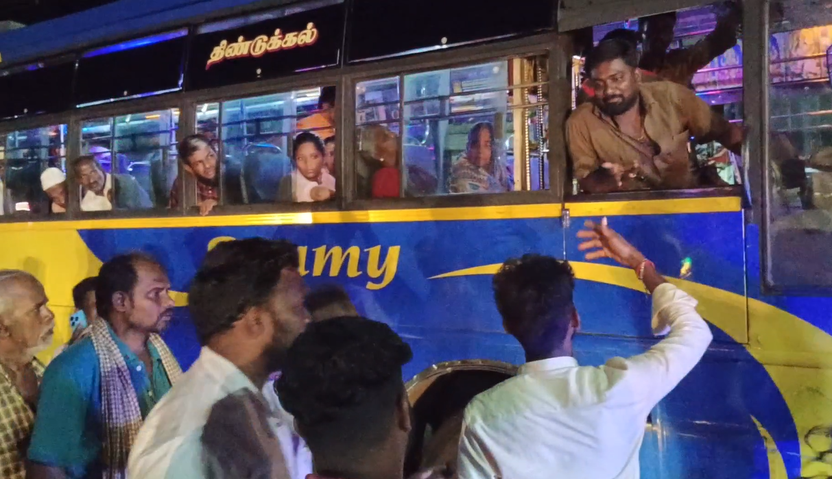 வேடசந்தூரில் இருசக்கர வாகனத்தில் சென்றவர் மீது தனியார் பேருந்தில் சென்ற அடையாளம் தெரியாத பயணி பான் பராக் போட்டு எச்சில் துப்பியதால் பேருந்தை மறித்து ரகளை செய்த இளைஞர்களால் நள்ளிரவில் பரபரப்பு ஏற்பட்டது.