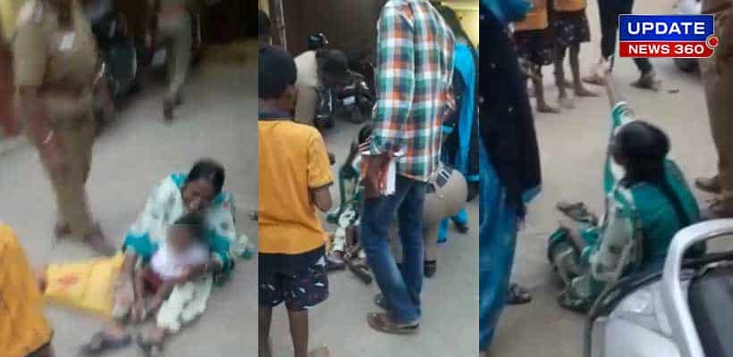 கரூர் : குடும்பத்தை சரிவர கவனிக்காமல் வேறு பெண்ணுடன் சென்ற கணவன் மீது நடவடிக்கை எடுக்கக்கோரி கரூர் அனைத்து மகளிர் காவல் நிலையம் முன்பு கைக்குழந்தையுடன் தரையில் அமர்ந்து தலையில் அடித்துக் கொண்டு பெண் கதறி அழுத சம்பவம் பெரும் சோகத்தை ஏற்படுத்தியுள்ளது.