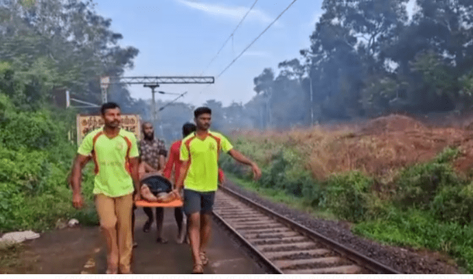 கன்னியாகுமரி மாவட்டம் குழித்துறை அருகே கழுவன்திட்டை பகுதியில் உள்ள ரயில்வே தண்டவாளத்தில் சுமார் 60 அடி உயரத்தில் இருந்து ஒருவர் தவறி விழுந்து உயிருக்கு போராடிய படி கிடப்பதாக குழித்துறை தீ அணைப்பு துறையினருக்கு தகவல் கிடைத்துள்ளது.