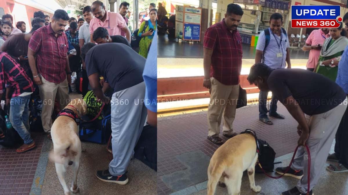 டி.எஸ்.பி. ஜெயராஜ் தலைமையில் இன்ஸ்பெக்டர் குமரேஷ்,சப் இன்ஸ்பெக்டர் கோமதி ஆகியோர் கோவை ரயில் நிலையத்தில் மோப்பநாய் உதவியுடன் திடீர் சோதனை நடத்தினார்கள்.