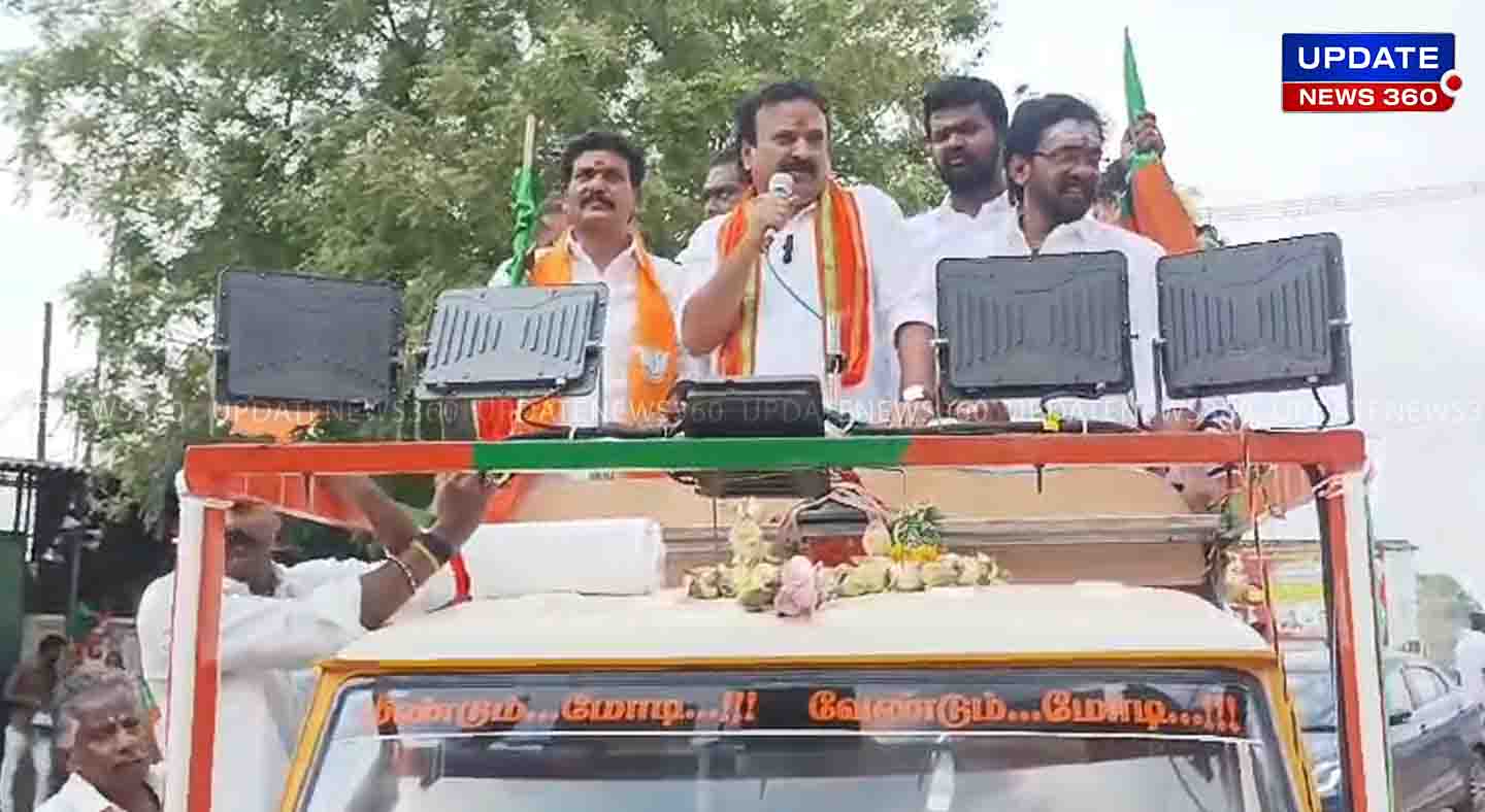 அண்ணா பேருந்து நிலையத்திலிருந்து ராமராயர் மண்டபம் உள்ளிட்ட பகுதிகளில் திறந்த வெளி வாகனத்தில் வருகை தந்தவரே தனது சின்னமான தாமரைக்கு வாக்களிக்குமாறு பொதுமக்களிடத்தில் வாக்கு சேகரிப்பில் ஈடுபட்ட அவர் தொடர்ந்து பொதுமக்களிடத்தில் திறந்தவெளி வாகனத்தில் இருந்தவாறு பேசும்போது, உங்களுக்கெல்லாம் இலவசமாக வீடு கட்டி கொடுத்த ஒரு அரசு என்றால் அது பாஜக.