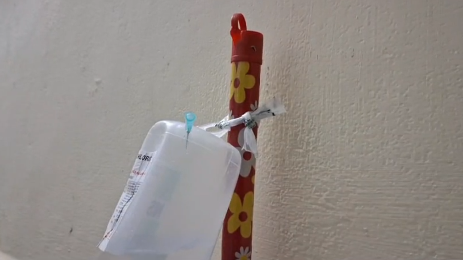 காஞ்சிபுரம் அரசு தலைமை மருத்துவனையில் மாப் குச்சி கொண்டு குளுக்கோஸ் பாட்டில் தொங்கவிட்டு நோயாளிகளுக்கு சிகிச்சை அளிக்கப்பட்டு வரும் அவல நிலை ஏற்பட்டுள்ளது.