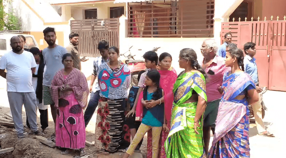 பணத்தை கொடுக்காமல் கான்கிரீட் அமைக்க முடியாது என்று ஒப்பந்ததாரர் கூறிய நிலையில், வீட்டு உரிமையாளர்களான பாலசந்தர், கோமதி தம்பதிகள் இருவரும் கழிவு நீர் வடிகால் குழியில் இறங்கி போராட்டத்தில் ஈடுபட்டனர்.