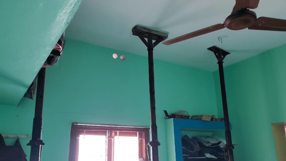 இதன் காரணமாக வீடு வலுவிழந்ததால் உள் பக்கமாக மேற்கூறையை தாங்கி பிடிப்பதற்காக இரும்பு ஜாக்கிகள் அமைத்து பாதுகாப்பு ஏற்படுத்தப்பட்டுள்ளது. மேலும், பக்கவாட்டு சுவற்றில் கான்கிரீட் அமைக்க வீட்டு உரிமையாளரிடம் ஒப்பந்ததாரர் ரூபாய் 43,000 பணம் கேட்டதாக புகார் எழுந்தது.