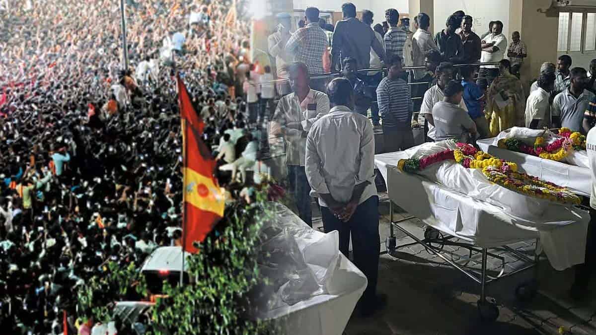 கரூர் வேலாயுதம்பாளையத்தில் த.வெ.க. சார்பில் நடைபெற்ற பிரசார கூட்டத்தில், கட்சித் தலைவர் விஜய் பங்கேற்று உரையாற்றிய போது ஏற்பட்ட கூட்ட…