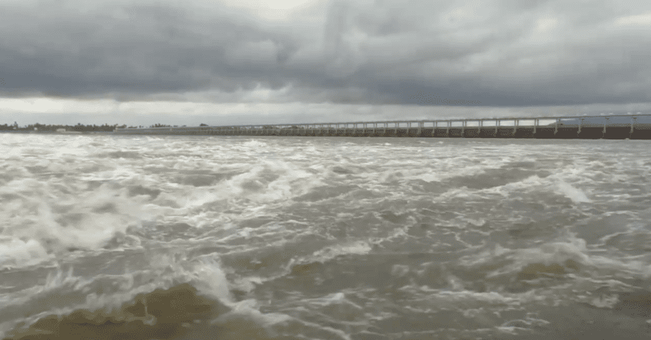 இந்த கதவணியில் வரும் மொத்த நீரையும் 93 மதகுகள் வழியாக அப்படியே வெளியேற்றப்படுகிறது. இதைத்தொடர்ந்து மாவட்ட நிர்வாகம் மற்றும் பொதுப்பணி துறை அதிகாரிகள், பொதுமக்கள் ஆற்றில் இறங்காதவாறு தடுப்பு வேலி அமைத்தும், முக்கியமான பகுதிகளில் காவல்துறையினர் பாதுகாப்பு பணியில் ஈடுபட்டனர். நீர்வரத்து அதிகரித்து கொண்டிருப்பதால் ஒலிபெருக்கி மூலம் பொது மக்களுக்கு எச்சரிக்கை விடுத்துள்ளனர்.