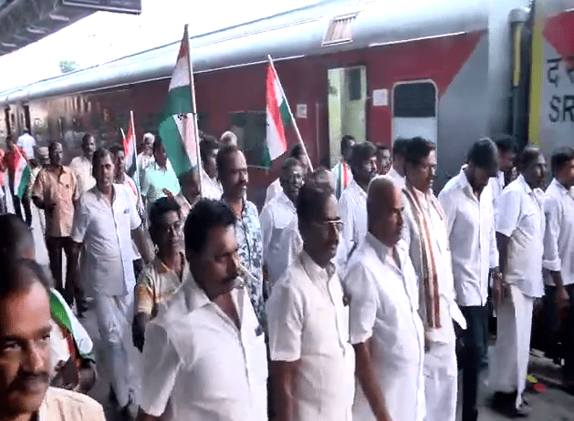 காங்கிரஸ் முன்னாள் தலைவரும், வயநாடு தொகுதி எம்பியுமான ராகுல்காந்தி இந்திய தேசத்தை ஒருங்கிணைப்போம் பாதயாத்திரை குறித்து தென் மண்டல கலந்தாய்வு ஆலோசனை கூட்டத்தில் மாநில காங்கிரஸ் தலைவர் கே.எஸ்.அழகிரி கலந்து கொள்வதற்காக இன்று காலை சென்னையிலிருந்து தூத்துக்குடிக்கு ரயில் மூலம் வருகை தந்தார்.