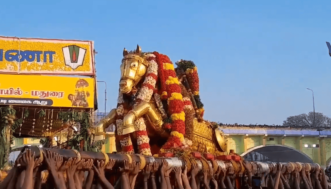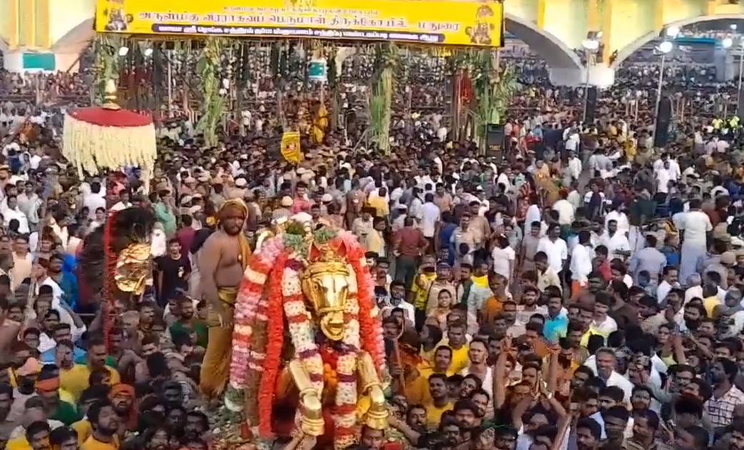 சித்திரை பௌர்ணமியை முன்னிட்டு மதுரை வைகை ஆற்றில் லட்சக்கணக்கான பக்தர்களின் ‘கோவிந்தா’ கோஷத்தோடு அருள்மிகு கள்ளழகர் தங்கக்குதிரை வாகனத்தில் வைகை ஆற்றில் எழுந்தருளினார். ஆயிரக்கணக்கான பக்தர்கள் முடி இறக்கி தங்களது நேர்த்திக்கடனைச் செலுத்தினர்.