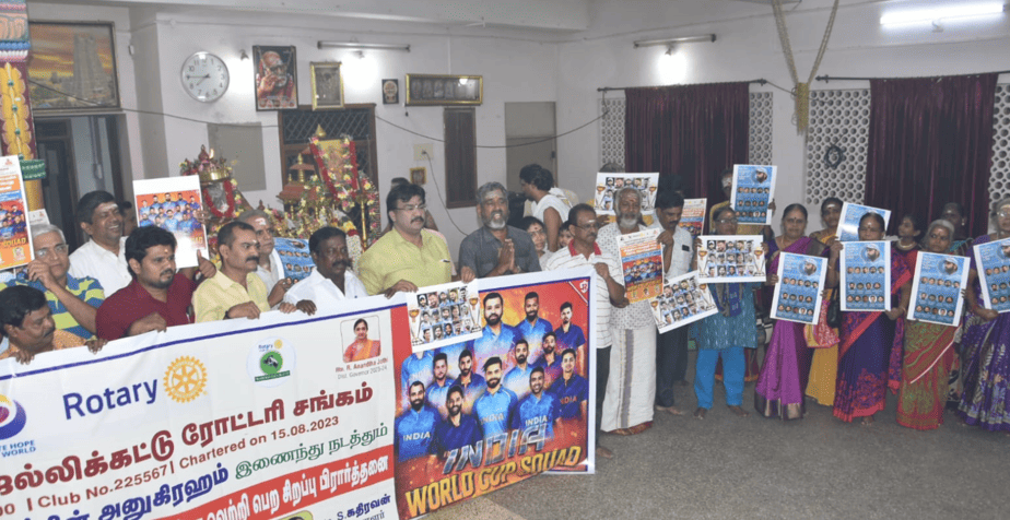 இந்நிகழ்வில் உலக கோப்பை கிரிக்கெட் போட்டியில் விளையாடும் வீரர்களின் போட்டோக்கள் மற்றும் உலக கோப்பை போட்டோ வைத்து அர்ச்சனை செய்து தொடர்ந்து மகா தீபாராதனை நடைபெற்றது.