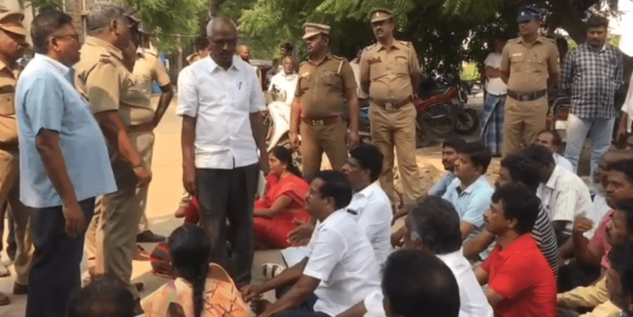 இதனால் அவர் கார் பின்னால் வந்த அமைச்சரின் கார் மாவட்ட ஆட்சியர் அலுவலகம் வெளியேவே நிறுத்தப்பட்டு, கடந்த மூன்று வருடங்களாக பூட்டியிருந்த ஆட்சியர் அலுவலக மற்றொரு வாசல் மூலம் அமைச்சர் ஆட்சியர் அலுவலகத்தில் உள்ளே வந்தார். இரண்டு மணி நேரம் நடைபெற்ற இந்த போராட்டத்தால் மாவட்ட ஆட்சியர் அலுவலகத்தில் பெரும் பரபரப்பு காணப்பட்டது.