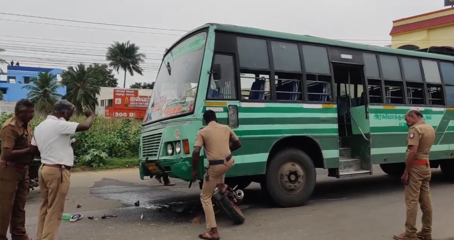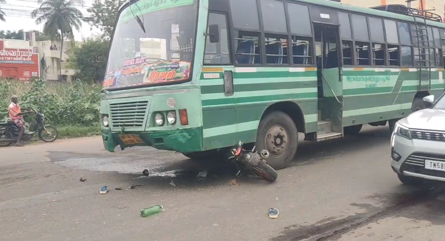 சிவகாசியிலிருந்து சேலம் நோக்கி சென்று கொண்டிருந்த அரசு பேருந்து மதுரை பசுமலை பகுதியில் சென்று கொண்டிருந்தபோது, அரசு பேருந்து மீது எதிரே வந்த இருசக்கர வாகனம் கட்டுப்பாட்டை இழந்து மோதி விபத்துக்குள்ளானது.