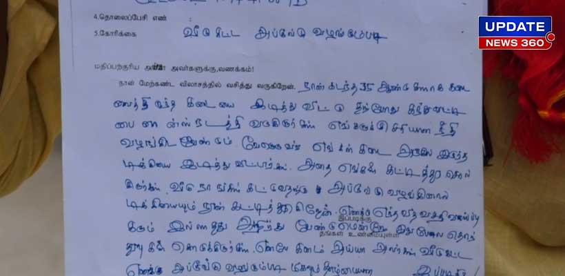திருச்சி மாவட்டம், லால்குடி சட்டமன்றத் தொகுதிக்குட்பட்டது அலுந்தலைப்பூர் கிராமம். அக்கிராமத்தை சேர்ந்தவர் அரவிந்ராஜ். இவர் தனது தாயார் சரஸ்வதியுடன் 35 ஆண்டுகளாக டீ கடை வைத்து நடத்தி வருகிறார். ஊராட்சித் தலைவருடன் ஏற்பட்ட முரண்பாட்டால் அந்த டீக்கடையினை இடித்துவிட்டதாக மிரட்டி வருகிறார்.