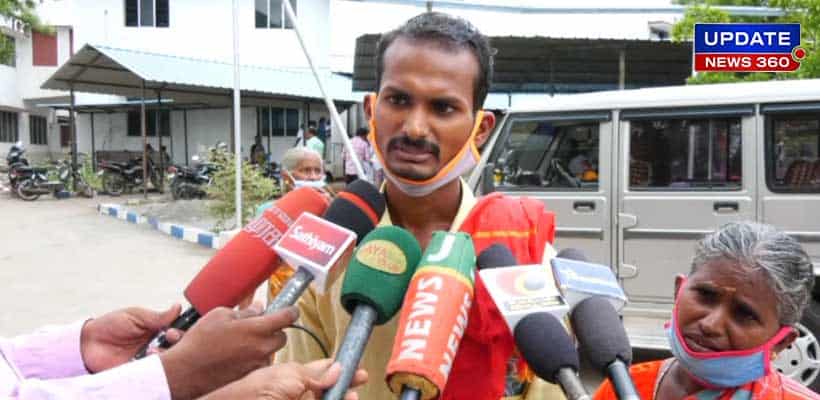 வீடு கட்ட அப்ரூவல் வேணும்னா 1 லட்சம் கொடு… இல்ல இடத்தை எழுதி கொடு… திமுக ஏம்எல்ஏவுடன் சேர்ந்து பஞ்சாயத்து தலைவர் மிரட்டுவதாக தாயுடன் நபர் தர்ணா..!!