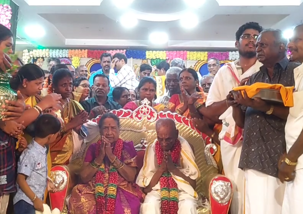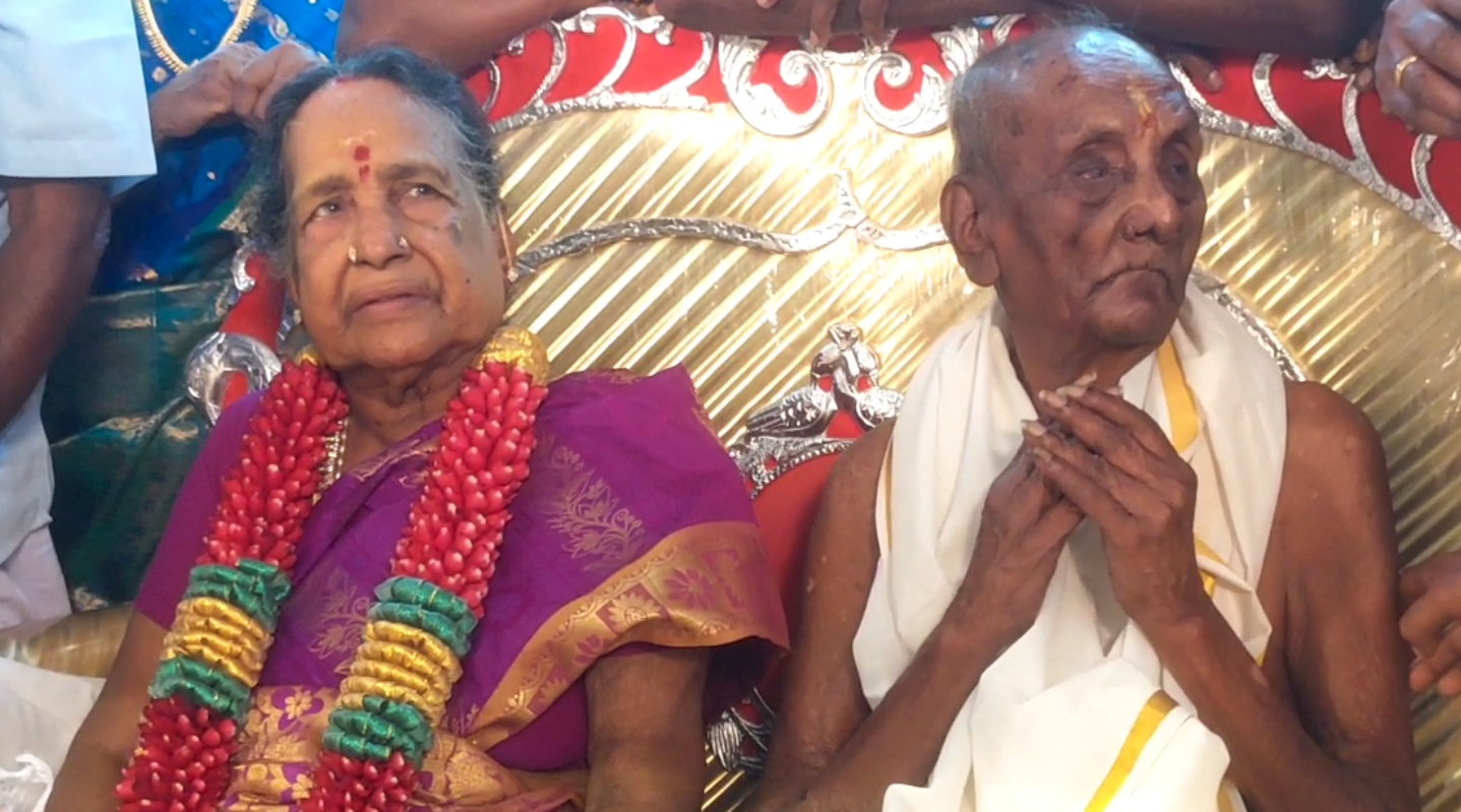 101 வது வயதில் மீண்டும் திருமணம் செய்ய வேண்டுமென பிள்ளைகள் முடிவெடுத்து நடைபெற்ற திருமணத்தில் வயதான தம்பதியினர் ஒருவருக்கொருவர் மாலை மாற்றி கொண்டு பிள்ளைகளுக்கு ஆசி வழங்கினர்.