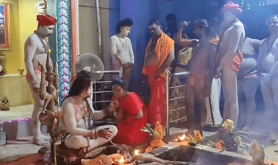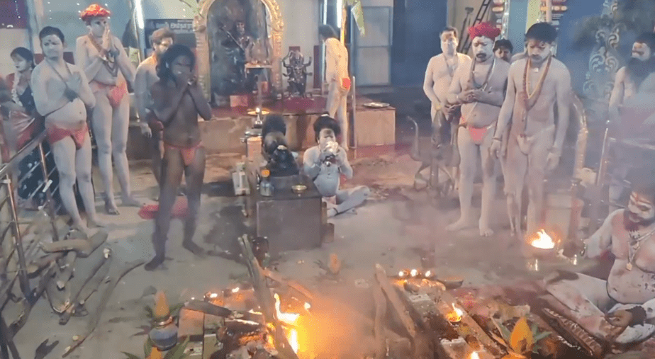 நள்ளிரவில் மண்டை ஓடுகளுடன் நடந்த நவராத்திரி பூஜை : உடல் முழுவதும் திருநீறு பூசி அகோரிகள் நடத்திய விநோத வழிபாடு!!