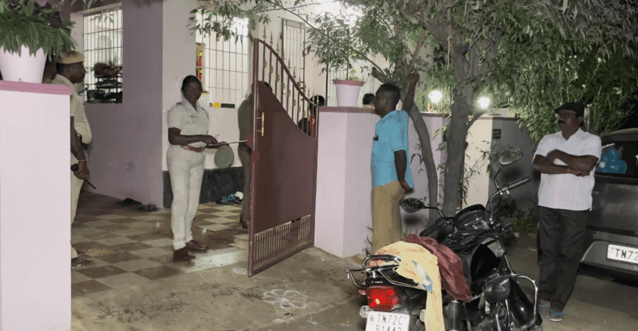 நெல்லை மாவட்டம் வி.எம். சத்திரம், ஜான்சி ராணி நகர் பகுதியைச் சேர்ந்தவர் ராமசாமி. இவர் தூத்துக்குடி மாவட்ட அரசு போக்குவரத்து கழகத்தில் நடத்துனராக பணிபுரிந்து வருகிறார். இவரது மனைவி வணிதா தனியாா் நிறுவனத்தில் (ரிலையன்ஸ்) பணிபுாிகிறாா். இந்நிலையில் புதன் இரவு ராமசாமி அவரது மகள், மகன் மூவரும் வீட்டில் இருக்கும் போது இருசக்கர வாகனத்தில் ஆறு பேர் கொண்ட மர்ம நபர்கள் வீட்டில் புகுந்துள்ளனர்.