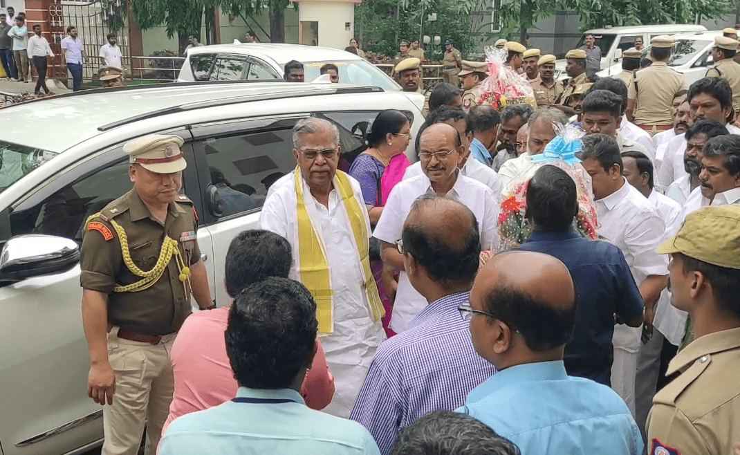 ஆளுநர் இல.கணேசனை, பாஜக மாநில பொதுச் செயலாளர் ராம சீனிவாசன், பாரதிய ஜனதா கட்சியின் மாவட்ட தலைவர் கனகராஜ், வழக்கறிஞர் திருமலைசாமி உள்ளிட்ட பலர் வரவேற்றனர்.