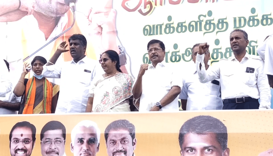 தமிழகத்தில் அனைத்தையும் நாங்களாகவே பார்த்துகொள்ள முடியும் அனைத்தையும் நாங்களாகவே நிர்வகித்து கொள்ள முடியும் என ஒரு புரம் கூறி விட்டு மறுபுறம் மின்சாரம் மாதிரியான தேவையானவற்றை கூட கொடுக்க முடியாத சூழ்நிலையில் திமுக அரசு நடந்து கொண்டிருப்பதாக தெரிவித்தார். மேலும் அனைத்து துறைகளிலும் லஞ்சம் தலை விரித்து ஆடுவதாக தெரிவித்தார்.