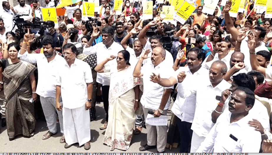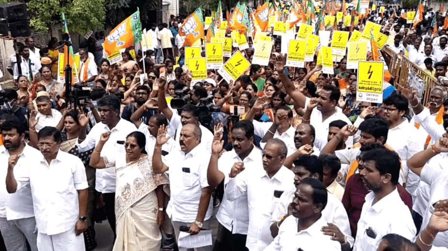 தமிழகத்தில் தற்போது மின் கட்டணம் உயர்த்தப்படுள்ளது. இதனை கண்டித்து கோவை மாவட்ட பாஜக சார்பில் தெற்கு வட்டாட்சியர் அலுவலகத்தில் ஆர்ப்பாட்டம் நடைபெற்றது. பாஜக தேசிய மகளிரணி தலைவர் வானதி சீனிவாசன் தலைமையில் நடைபெற்ற இந்த ஆர்ப்பாட்டத்தில் தமிழகத்தில் மின் கட்டண உயர்வை கண்டித்தும் மின்சார துறை அமைச்சர் செந்தில் பாலாஜியை கண்டித்தும், திமுக அரசை கண்டித்தும் கண்டன முழக்கங்கள் எழுப்பட்டது.