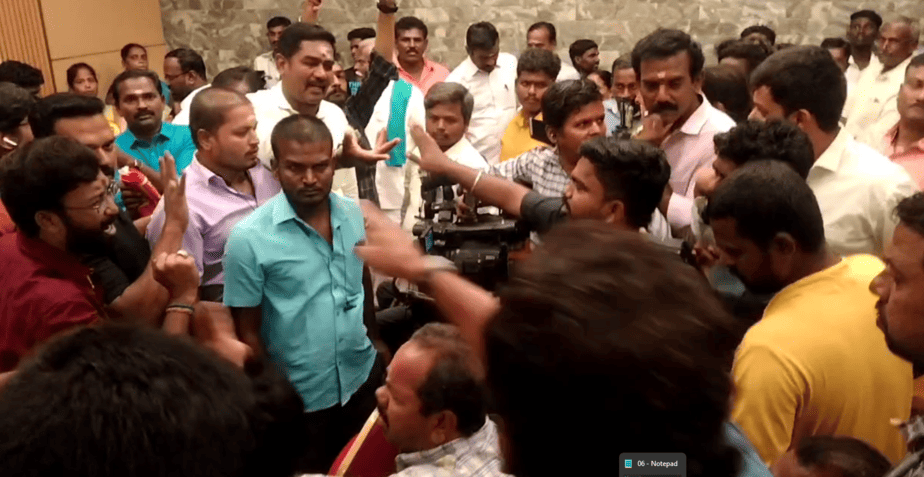 இதனிடையே, நாம் தமிழர் கட்சியின் தகவல் தொழில்நுட்ப பிரிவை சேர்ந்தவர்கள் பத்திரிக்கையாளர் சந்திப்பு கூடத்திற்கு வருகை தந்து, அங்கிருந்த பத்திரிக்கையாளர்களை ஒருமையில் பேசி தகாத வார்த்தைகளால் திட்டி வாக்குவாதத்தில் ஈடுபட்டனர். இதனால், ஆத்திரமடைந்த பத்திரிக்கையாளர்கள் அங்கிருந்து செய்தியாளர் சந்திப்பை புறக்கணித்து வெளியேறினர். இதனால் அங்கு சிறிது நேரம் பெரும் பரபரப்பு நிலவியது.